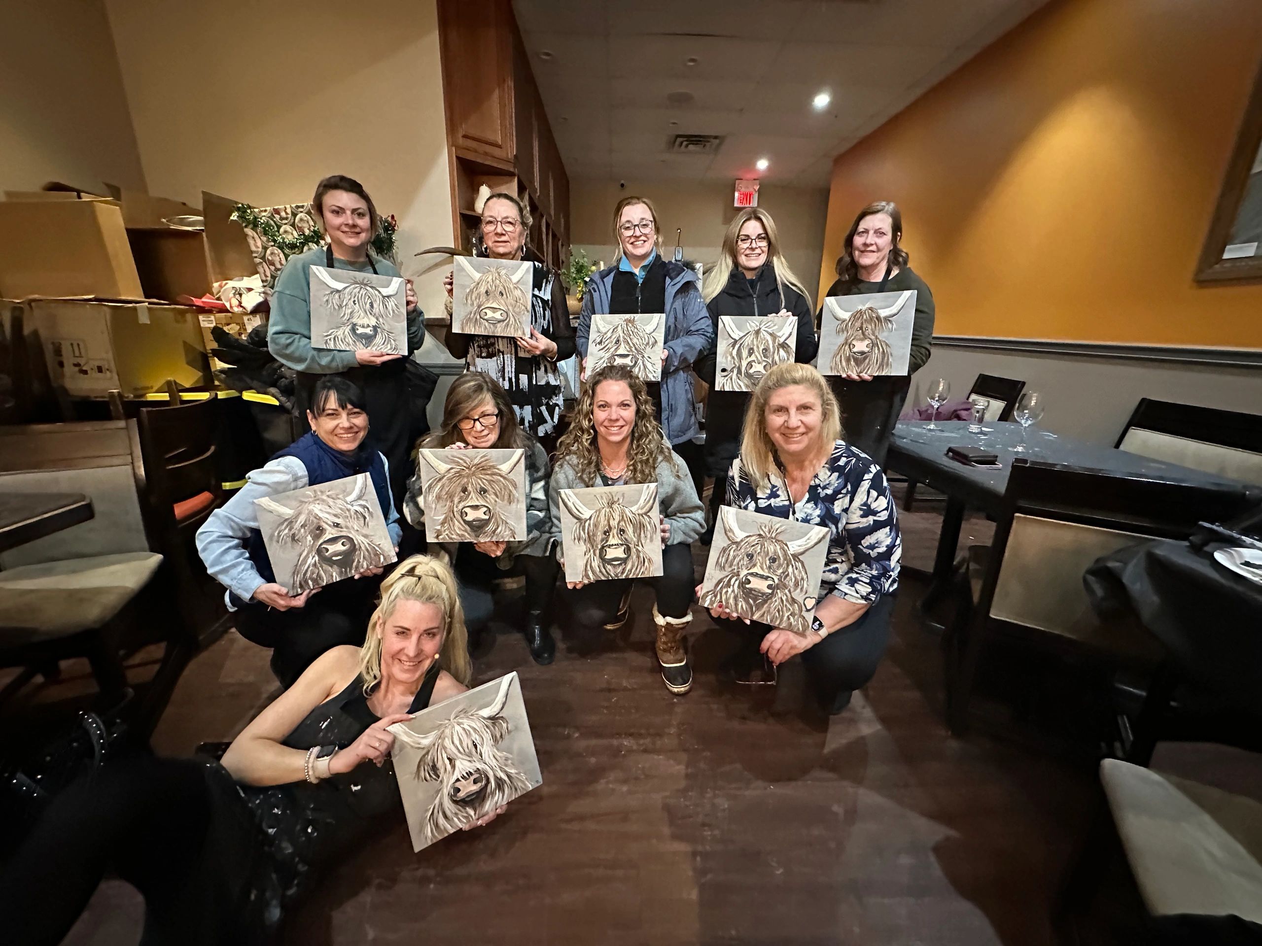 This comprehensive package includes travel, setup, and all necessary supplies such as wood boards, paper towels, aprons, protective table covers, paint, brushes, easels, paint cups, individual lighting, and spray bottles. Additionally, we provide step-by-step instruction and cleanup.